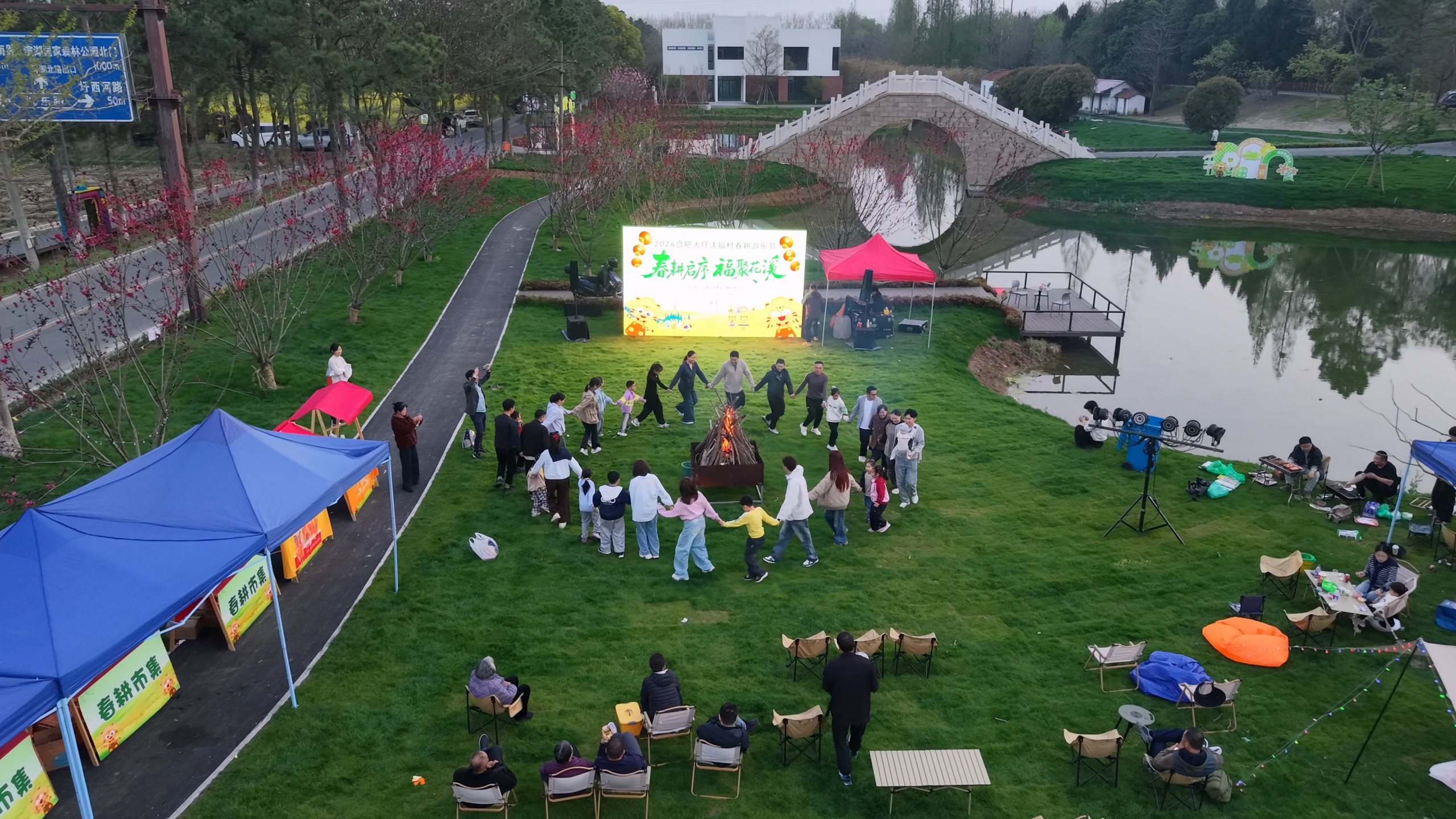 十里花溪成春日爆款,累计接待游客逾万人次。作为本次活动核心打卡地,十里花溪一经开放便成为合肥现象级春游热点。景区依托原生态田园风光与花溪美景,打造全天候、多元化、沉浸式文旅体验。每日定时上演小丑互动表演、近景魔术秀,趣味十足、欢乐不停,深受亲子家庭喜爱;潮流乐队现场驻唱,民谣、流行轮番上演,让花海与歌声相映成趣;自助烧烤区烟火升腾,满足游客舌尖上的田园享受;夜幕降临,盛大篝火晚会点燃热情,游客围火而舞、尽情狂欢,将春日氛围推向高潮。活动期间,十里花溪内草坪开阔、绿意盎然,大批市民自发携带帐篷露营休憩,临水而坐、枕花而眠,享受慢节奏乡村生活。景区内步步是景、处处出圈,摄影打卡、亲子游乐、朋友聚会、家庭野餐需求一站式满足,日均游客量持续攀升,成为合肥最具人气的开放式田园文旅空间,真正实现 “白天有玩头、晚上有看头、全程有乐头”。