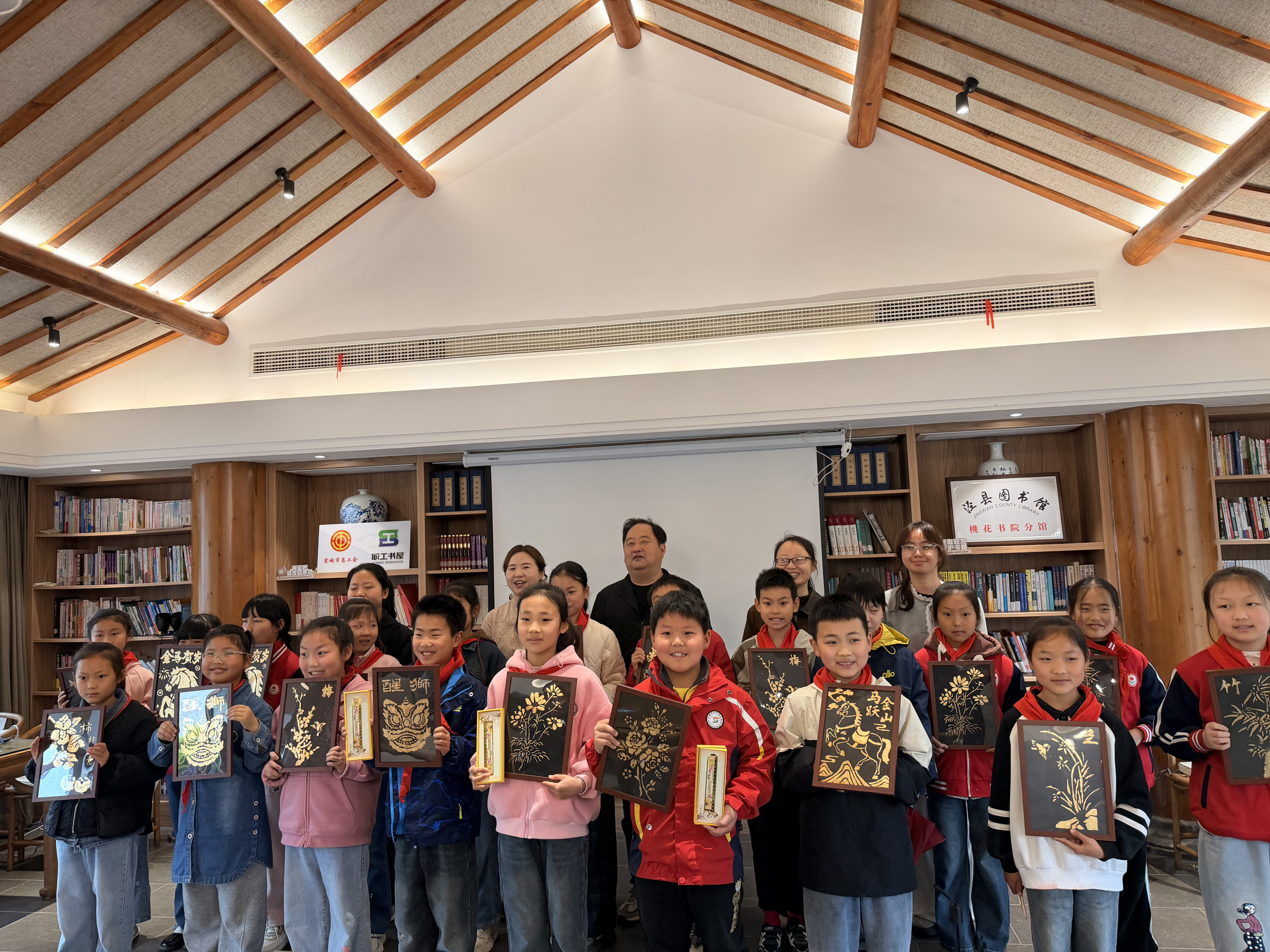 在趣味手工活动中,孩子们细心描摹、上色、拓印,深度体验非遗手工金箔画的精美绝伦。一幅幅精美的小画,一张张开心的笑脸,为此次世界读书日活动画上了圆满的句号。