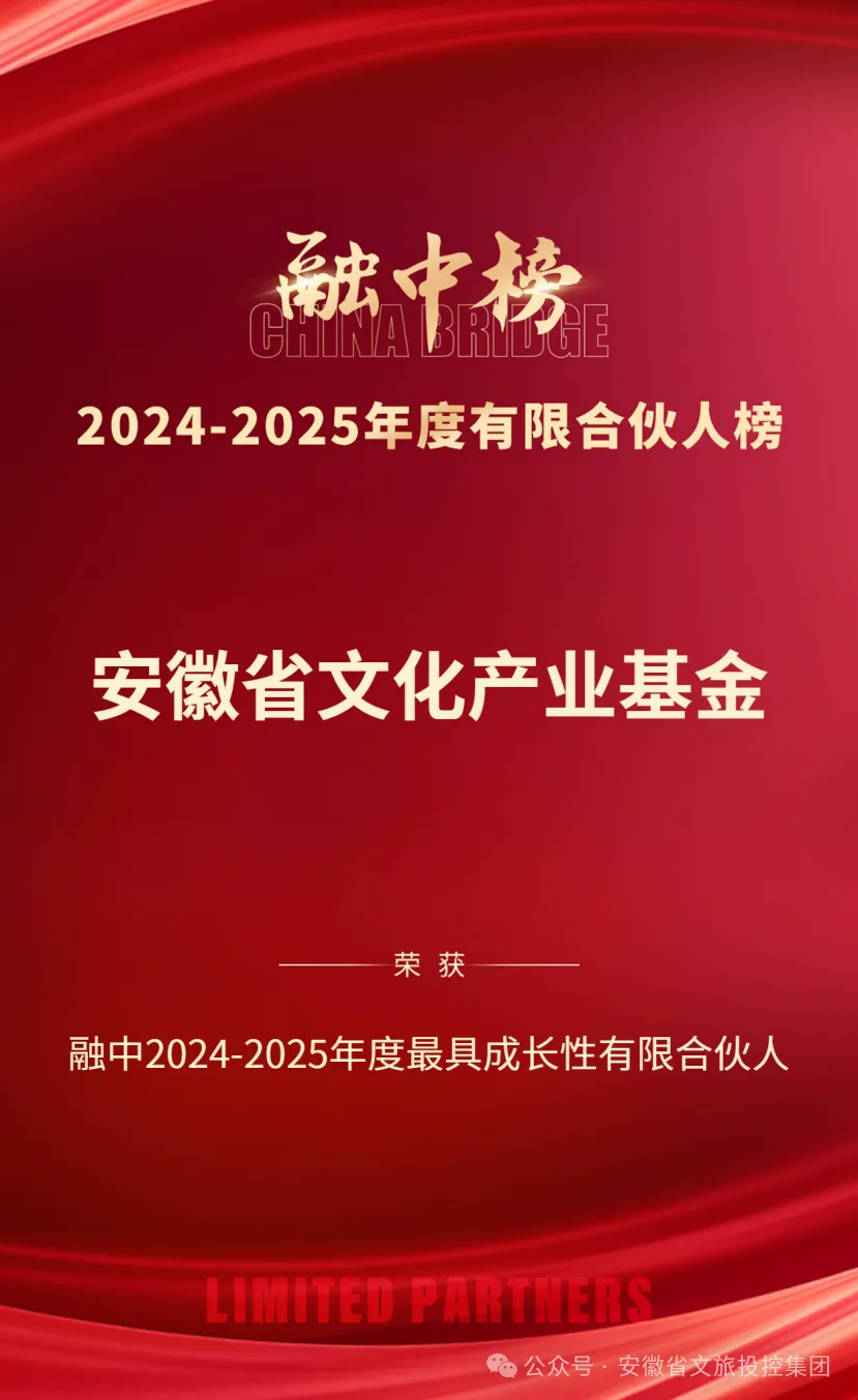 喜报!安徽文化产业投资私募基金管理有限公司荣登“融中2024-2025年度最具成长性有限合伙人”榜单