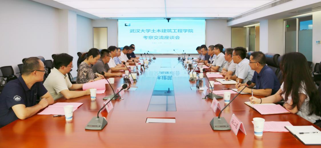 武汉大学土木建筑工程学院领导班子及总院相关部门负责人、技术研发人员参加座谈。座谈会上,双方围绕深化校企合作、强化人才培养、推动产学研联动等方面展开深入交流探讨。