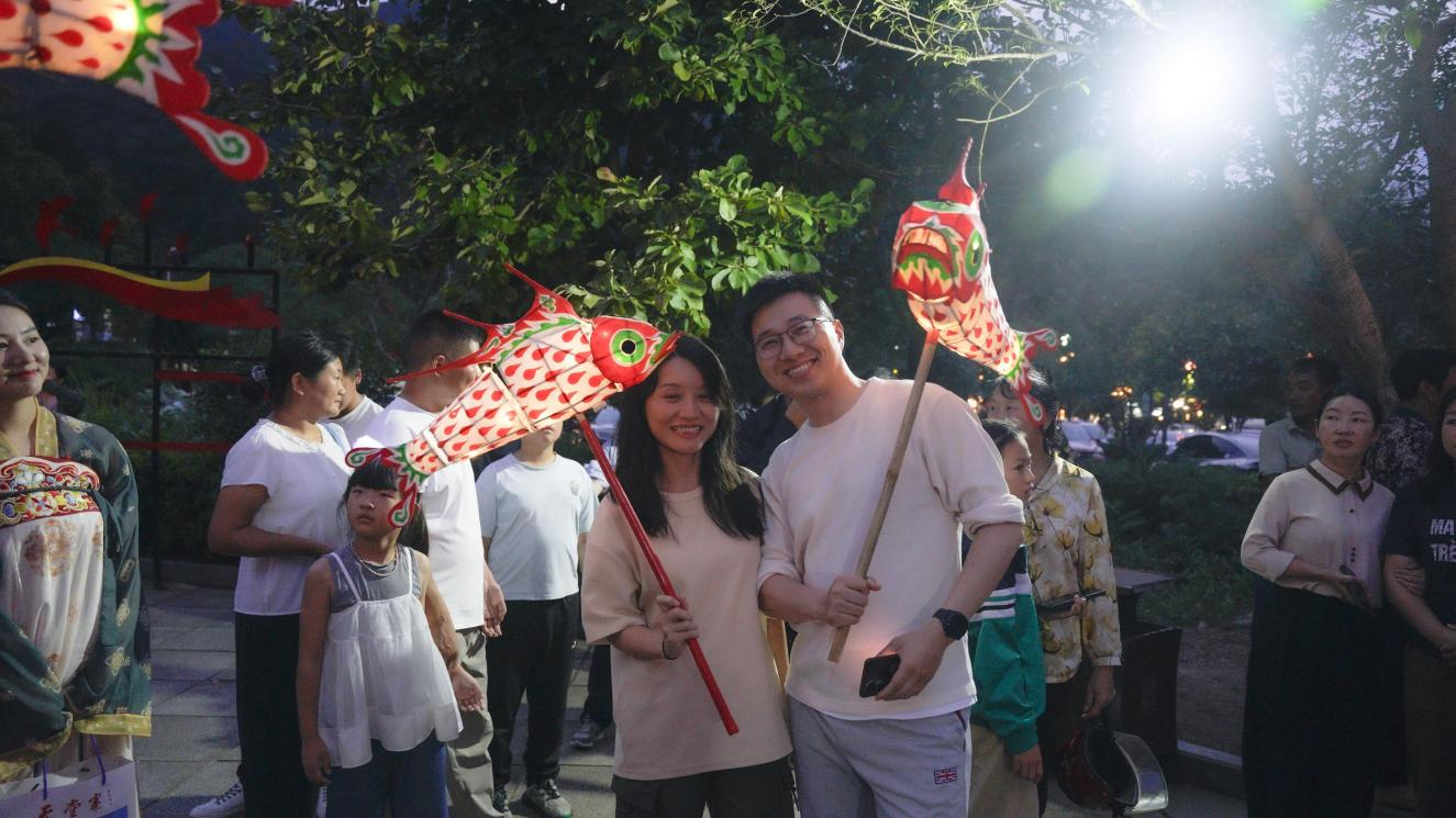 夜游活动以感恩自然、祈福安康的民俗内涵的开寨仪式为序,传递传统文化温度。绚烂的烟花与舞龙表演交辉相映,将国家非遗项目舞龙与现代光影结合,营造震撼视觉效果。数十盏鱼灯在汉服文化使者引领下巡游山野,展现地方民俗魅力,营造出穿越古今的文化氛围。