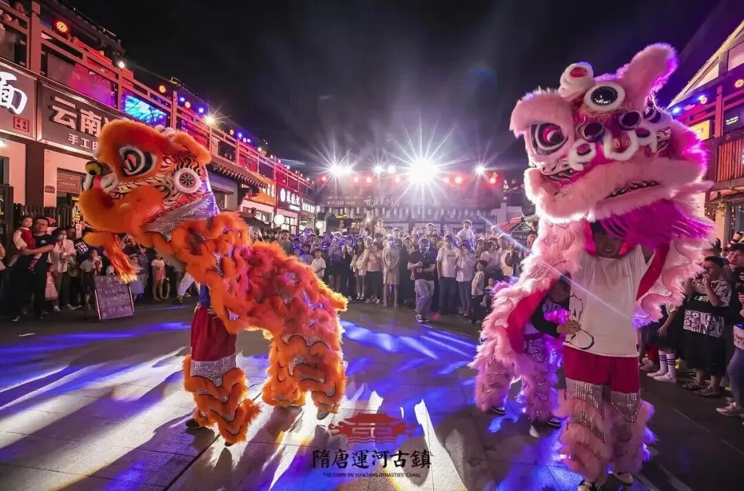 与此同时,隋唐运河古镇越夜越精彩,在璀璨的灯光下、热情的吆喝声中,很多身着汉服的游客,漫步在古韵古香的运河古镇里,观美景、看非遗、品香茶、鉴美食,来一场穿越时空的沉浸式夜游。