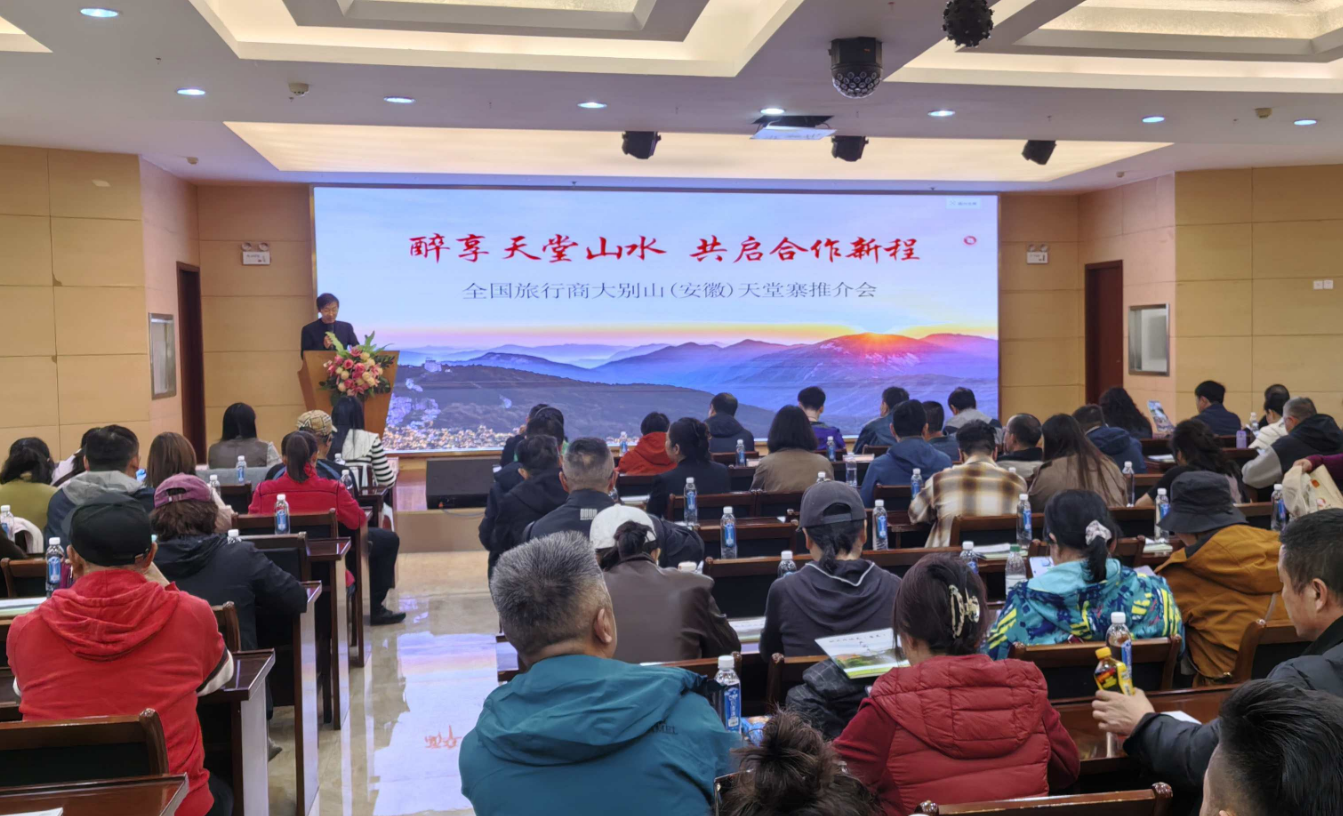 当日上午,踩线团实地考察了天堂寨景区,沉浸式感受天堂寨红色文化底蕴与绿色生态资源,系统了解了景区游览线路规划、配套服务体系及产品组合方案。在随后的文旅推介会上,天堂寨公司通过视频短片与PPT演示相结合的方式,立体式呈现了天堂寨"红绿相映"的文旅产业特色。活动现场还特别设置了景区门票抽奖互动环节,有效提升了与会代表的参与热情。代表们对天堂寨景区创新的营销模式及丰富的文旅产品给予高度评价,一致认为天堂寨景区资源禀赋优越、交通条件便利、配套设施完善,具有广阔的合作前景。代表们纷纷表示,将进一步深化与天堂寨景区的战略合作,结合市场需求设计更多精品旅游线路。会上,金寨文旅、天堂寨度假山庄、西庄温泉、燕子河大峡谷、梅山水库、龙津溪地等单位先后进行了现场展示和推介。会后,踩线团赴英山县、罗田县、红安县等环大别山片区核心文旅节点进行考察,系统调研大别山区域旅游资源及协同发展路径。