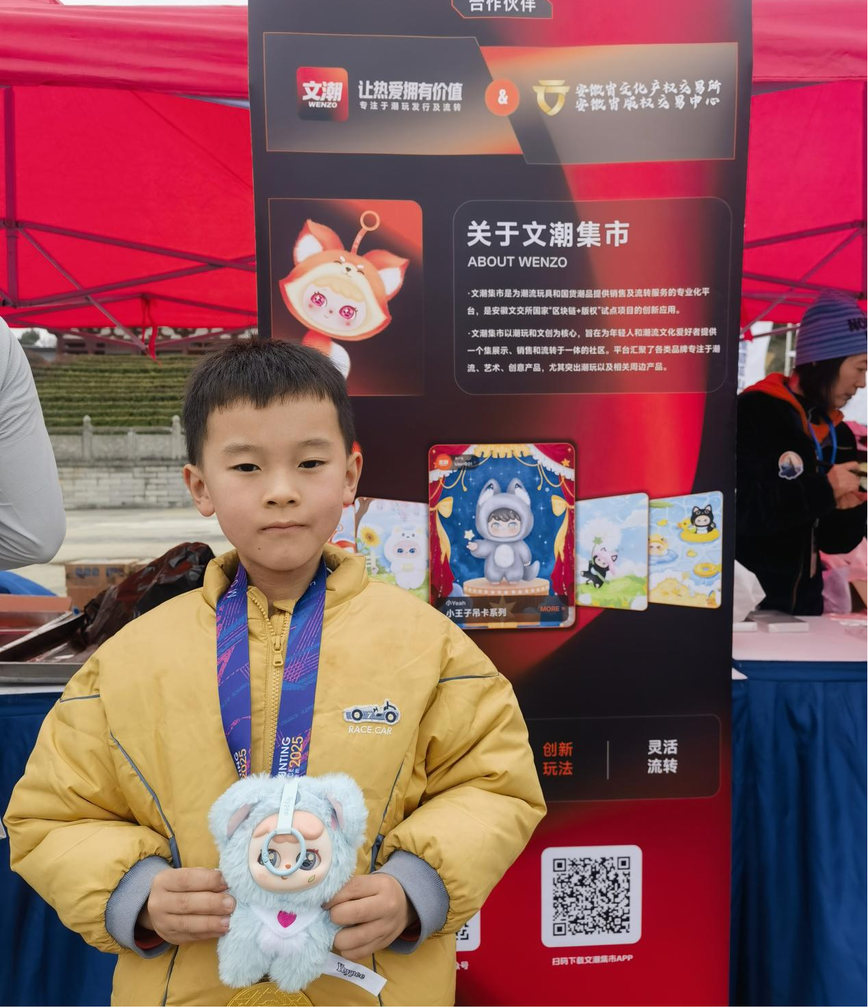 赛事终点处,文潮集市提供的小耶、赤狐魅影等潮玩纪念品深受参赛者喜爱。文潮集市以潮流玩具为每位跑者加油鼓劲,让这场轻越野赛事充满治愈感与纪念意义,成为连接运动精神与潮流文化的温暖纽带。未来,安徽文交所文潮集市平台将继续发挥自身优势,通过潮玩的文化感染力推动文化出圈,同时持续为多领域赋能助力,为美好安徽建设贡献更多力量。