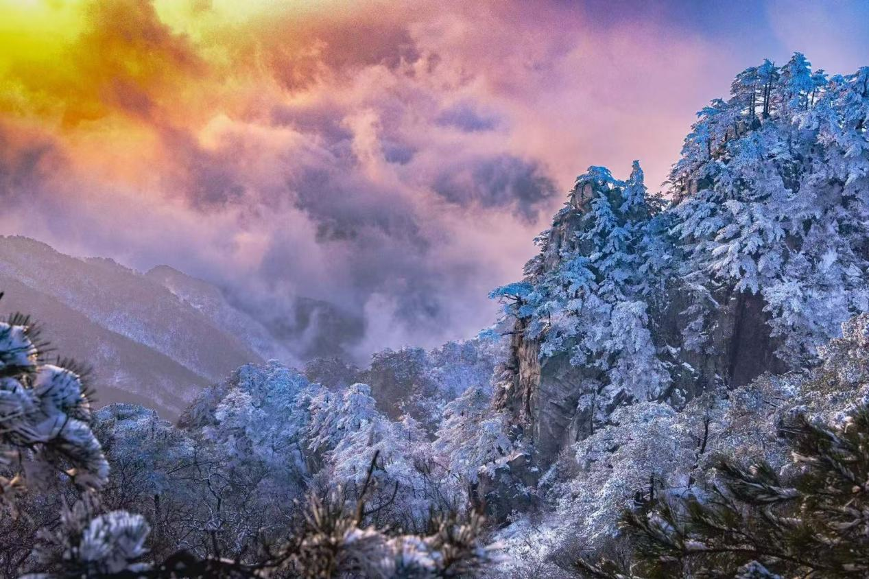 雾凇雪景勾勒冬日仙境。节日期间,天堂寨景区银装素裹,美不胜收,晶莹剔透的雾凇在阳光下熠熠生辉,玉树琼枝相映成趣。游客们穿梭其间,或驻足拍照定格美景,或漫步雪道感受静谧,沉浸式体验“北国风光,千里冰封”的诗情画意。游客纷纷感叹“美爆了!宛如走进了冰雪童话世界”。