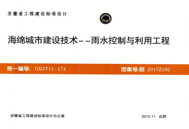4.安徽省地方标准《海绵城市建设技术-雨水控制与利用工程》(DBJT11-174):作为2015年发布实施的全国首部省级海绵城市建设标准图集,图集立足省情,系统构建了以“渗、滞、蓄、净、用、排”为核心的低影响开发雨水系统工程设计体系。图集涵盖城市道路、建筑小区等四大领域,为设计、施工、管理等环节提供了科学规范的技术依据。实施十余年来,有效提升了工程建设的规范性与实效性,对全国海绵城市标准化建设起到了重要的引领和示范作用。