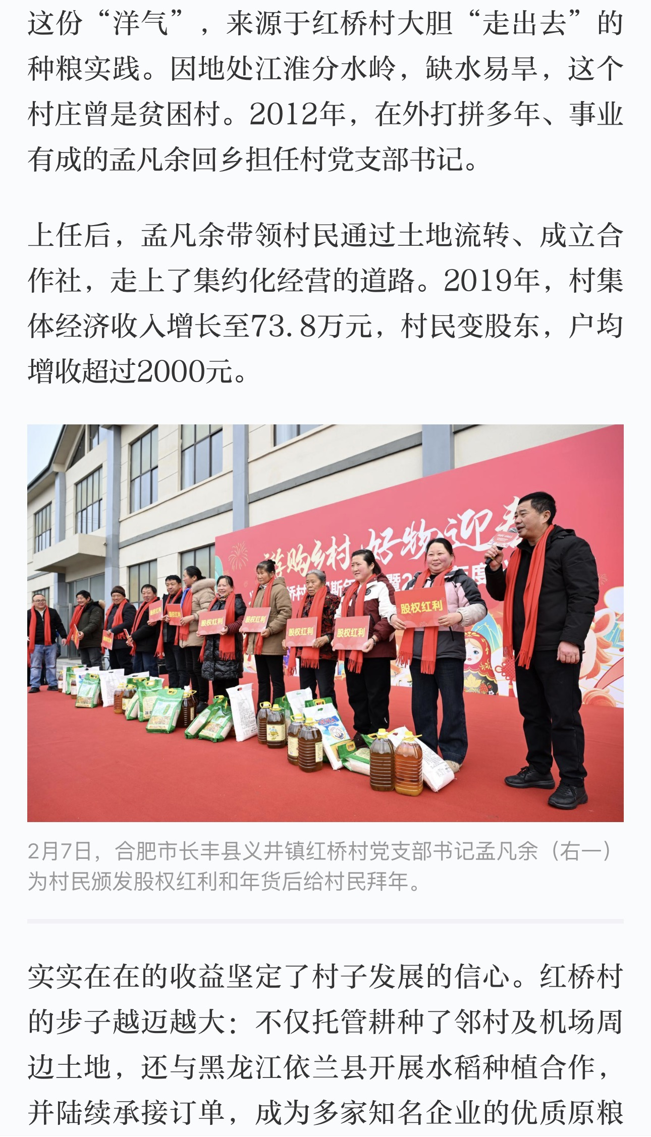 近日,省文旅投控集团驻红桥村工作队联合长丰县义井镇红桥村“两委”,成功举办红桥村俄罗斯年货节暨2025年度分红大会。这已经是红桥村连续第五年开展年终分红工作,切实将帮扶成果转化为村民看得见、摸得着的实际收益。红桥村乡村振兴相关经验做法被“学习强国”平台报道,进一步放大了其作为乡村振兴典型案例的示范引领效应,扩大了社会影响力,为全省乡村振兴工作提供了可借鉴、可推广的实践经验。